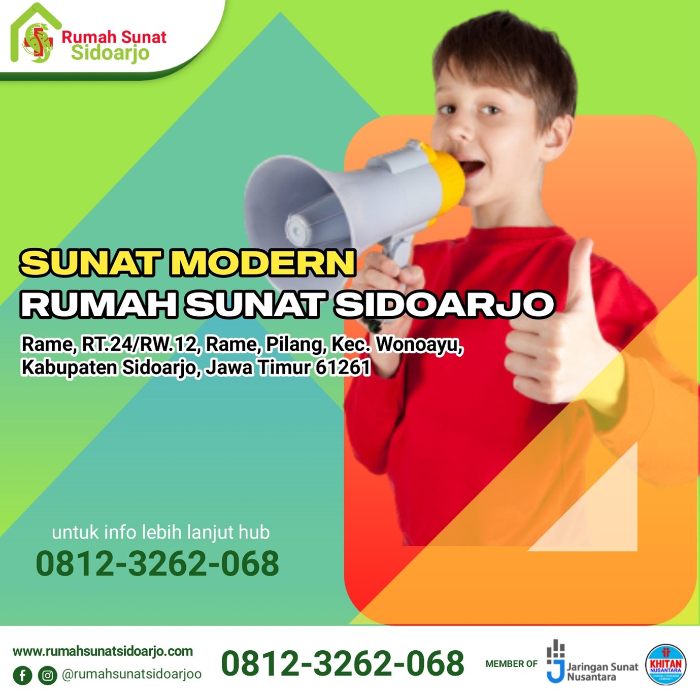 Rumah Sunat Sidoarjo , satu klinik medis terbaik yang memberikan layanan khitan modern di Sidoarjo. Khitan modern sunat nyaman untuk semua usia di Sidoarjo ini di operatori oleh seorang tenaga medis yang sangat mumpuni dibidang perkhitanan tanpa perlu diragukan lagi oleh masyarakat Sidoarjo. Selain mumpuni, khitan professional anak dan dewasa lebih dari sekedar tukang sunat yang merupakan anggota dari Khitan Nusantara (KN) & Jaringan Sunat Nusantara (JSN) yang diakui sebagai lembaga pelaksana Sunat/ Khitan yang dipercaya di seluruh Indonesia.