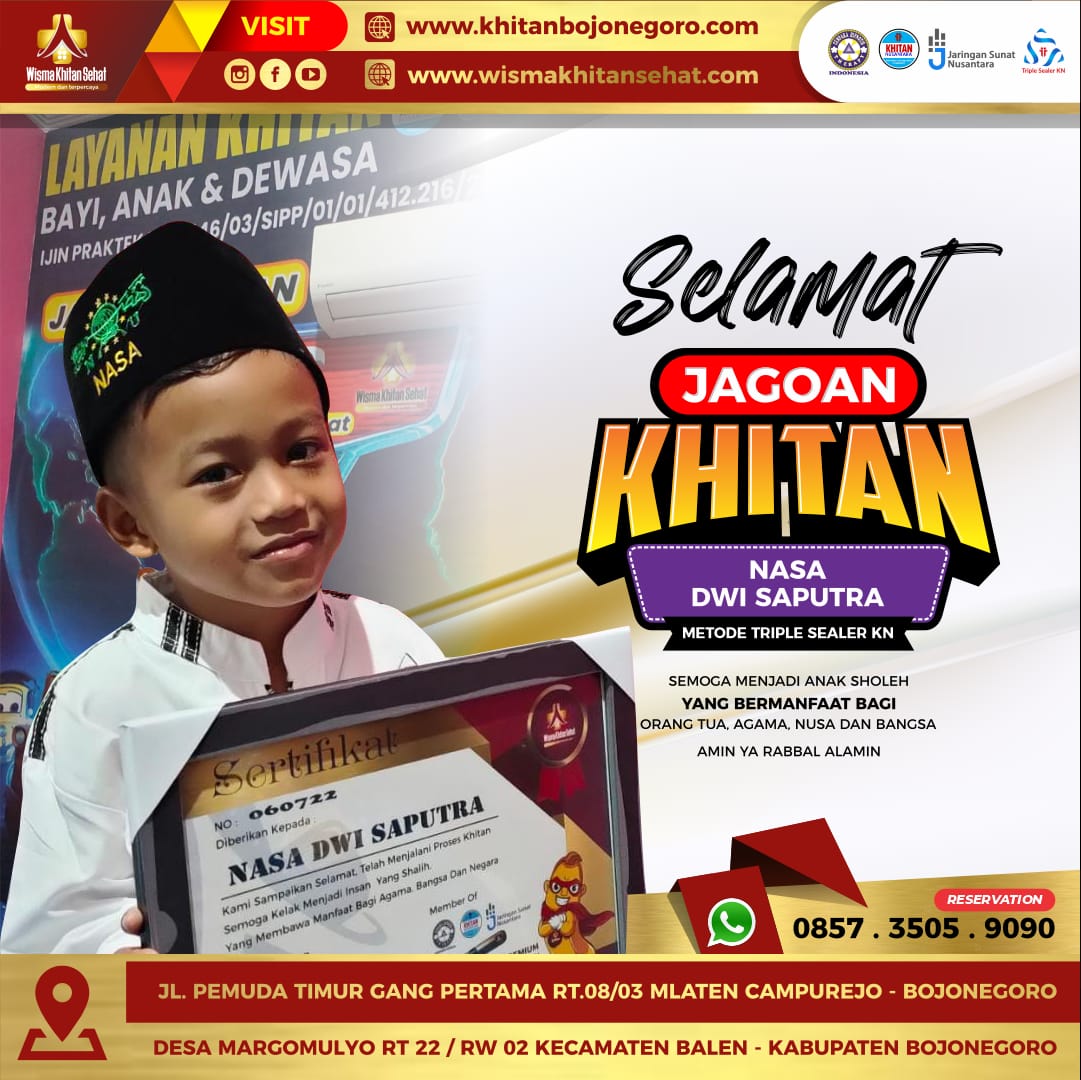 Wisma Khitan Sehat Bojonegoro, hadir membantu masyarakat dengan fasilitas layanan sunat yang dikonsep secara khusus, yang beralamatkan Jl. Pemuda Timur Gang Pertama RT. 08 Rw. 03 Mlaten Campurejo Bojonegoro.