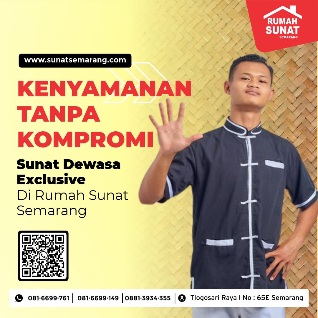 Sunat dewasa dengan metode khitan modern esu sealer merupakan metode khitan tercanggih dan terbaru yang hanya bisa Anda jumpai di Semarang. Salah satu rekomendasi tempat sunat terbaiknya berlokasi di Jl. Tlogosari Raya No. 65 E Kota Semarang, tepatnya adalah Rumah Sunat Semarang. Tempat ini juga menjadi solusi terbaik bagi Anda yang mencari tempat khitan anak di Kota Semarang.