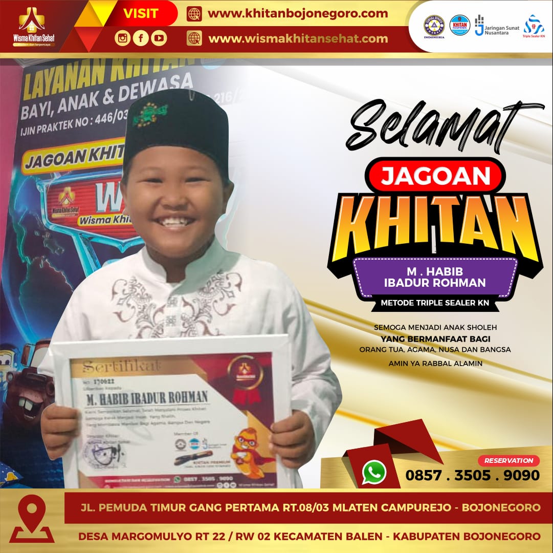 adalah sebuah dambaan bagi seorang anak ketika sunat tidak sakit, mencari tempat sunat yang benar benar amanah di kota Bojonegoro tidaklah sulit. Sebuah layanan kesehatan khusus khitan bagi anak jagoan ayah bunda yang benar benar amanah, klinik khitan center Wisma Khitan Sehat 0813.3565.4303 adalah jawabannya. Klinik khitan yang benar benar nyaman bagi anak sesuai amanah dari orang tua untuk menciptakan suasana sunat yang menyenangkan.