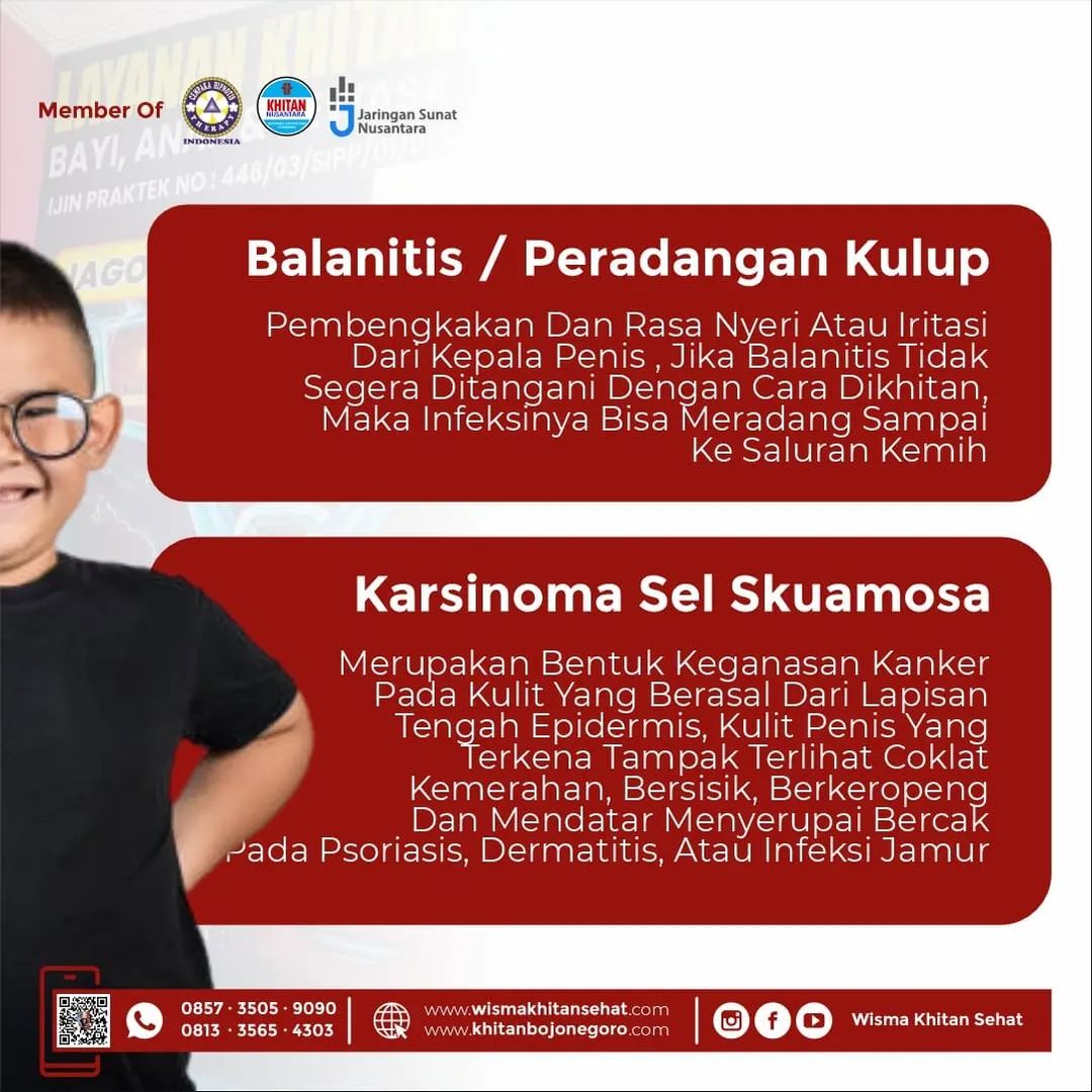 Whisma Khitan Sehat adalah tempat yang tepat untuk melakukan sunat pada anak laki-laki. Di samping menggunakan metode tradisional, Whisma Khitan Sehat juga mengedepankan aspek kesehatan dengan menggunakan metode modern yang steril dan aman bagi anak-anak. Para tenaga medis yang berpengalaman juga siap memberikan pelayanan dengan sebaik-baiknya.