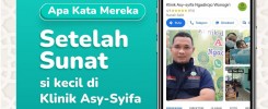 Karena itu, memilih jenis sunat yang sesuai dengan kondisi anak juga sangat berpengaruh. Di Klinik Asy Syifa Ngadirojo, orang tua bisa berdiskusi dulu. Tidak perlu sungkan bertanya. Semua dijelaskan dengan bahasa yang mudah dipahami, tanpa kesan menggurui.