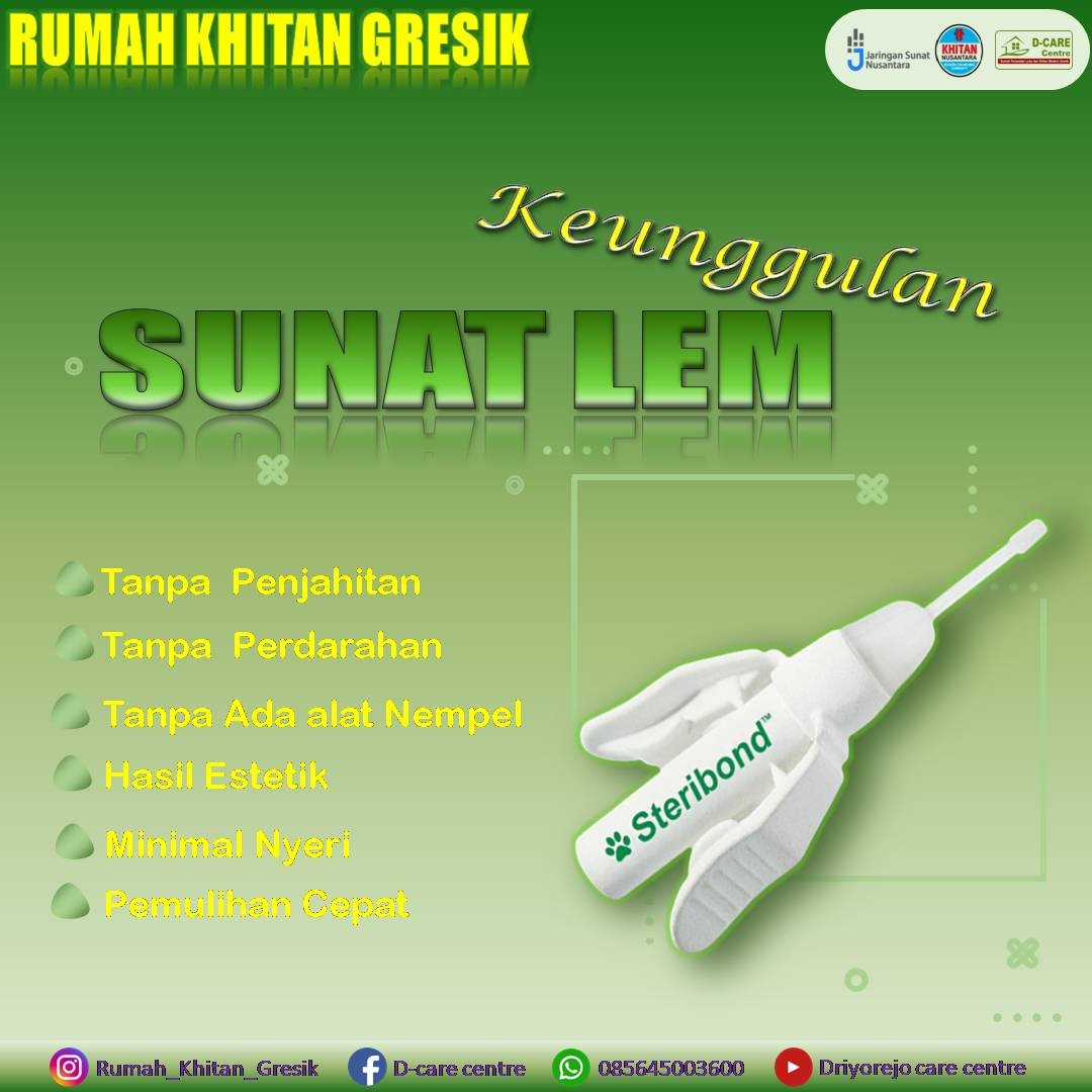 Sebagian besar anaka-anak merasa takut apabila mendengar kata sunat. Bahkan, tak sedikit anak yang mengalami trauma, ngeri karena takut dipotong dan dijahit. Maklum saja, kesan dijahit menjadi kata yang menyeramkan bagi sebagian anak atau orang yang belum dikhitan atau disunat. Dengan menggunakan lem proses penjahitan bisa dihilangkan jadi rasa takut pada anak atau orang yang akan dikhitan menjadi bisa diminimalisi