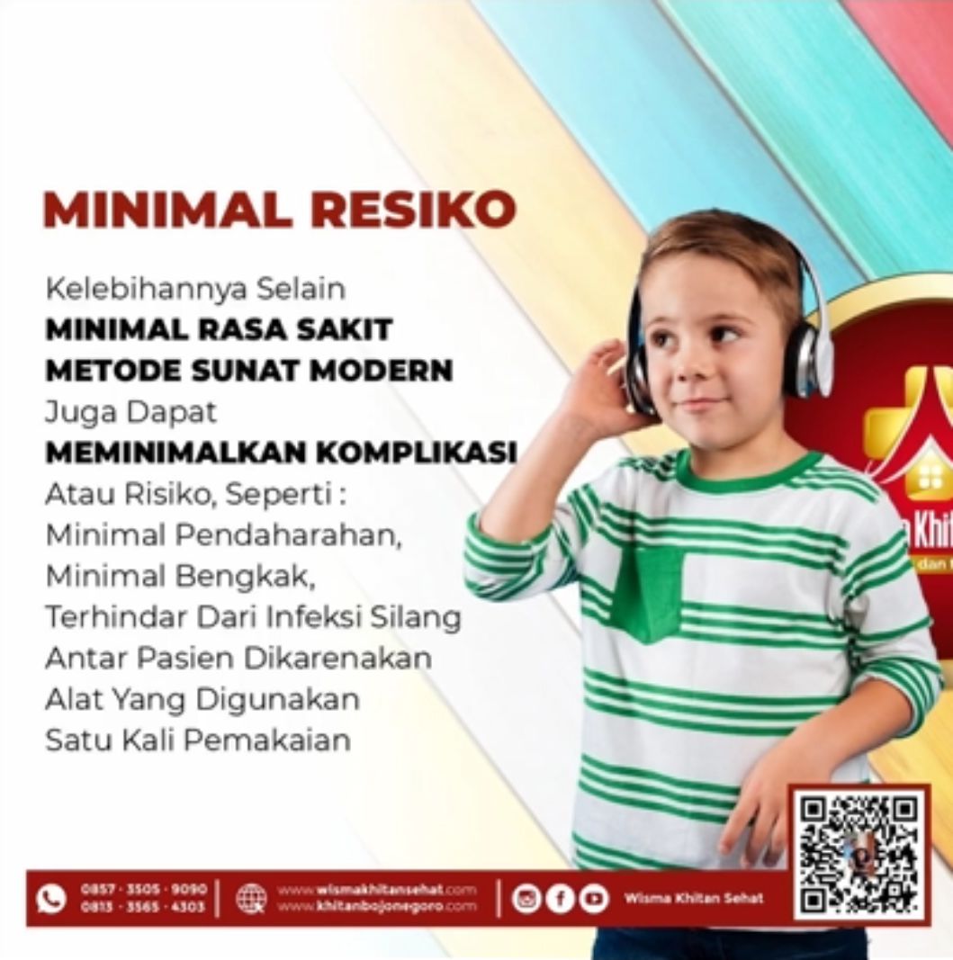 Metode khitan modern yang ditawarkan oleh Wisma Khitan Sehat memiliki resiko minimal dibandingkan dengan metode khitan tradisional. Wisma Khitan Sehat menggunakan peralatan medis canggih yang steril dan anestesi lokal untuk membantu mengurangi rasa sakit selama prosedur. Selain itu, para dokter yang terlatih dan berpengalaman juga menangani proses khitan, meminimalisir resiko dan membuat pasien merasa tenang.